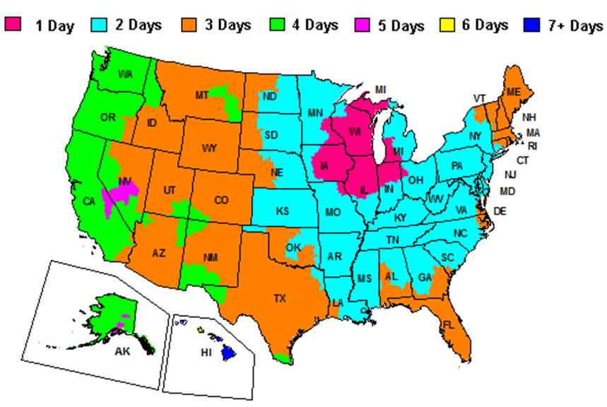 Mountain States: 2-5 days